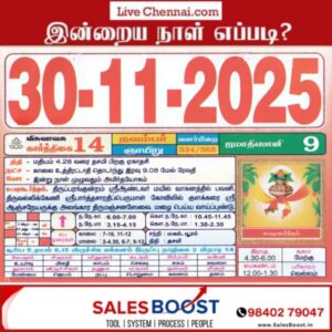 November 30, 2025 – Sunday | Karthigai 14 | Visuvavasu Year Auspicious Timings Morning 6:00 AM – 7:00 AM Evening 3:15 PM – 4:15 PM Shubh Hora Timings Morning 7-10,11-12