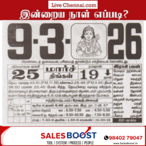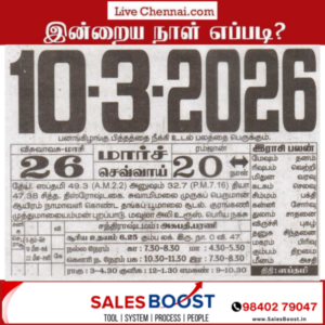 March 10, 2026 – Tuesday | Masi 26 | Visuvavasu Year Auspicious Timings Morning 07:30 AM – 08:30 AM Evening 04:30 PM – 05:30 PM Inauspicious Timings Emakandam 09:00 AM