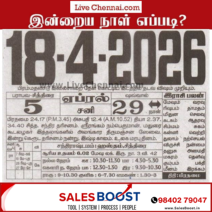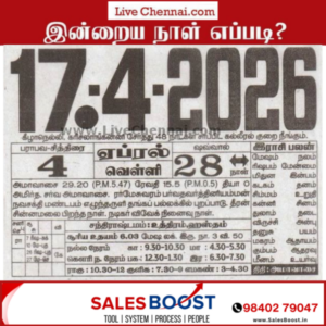 April 17, 2026 – Friday | Chithirai 4 | Parabhava Year Auspicious Timings Morning 09:30 AM – 10:30 AM Evening 4.30 AM – 5.30 AM Inauspicious Timings Emakandam 03:00 PM