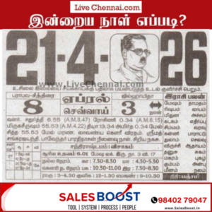 April 19, 2026 – Sunday | Chithirai 6 | Parabhava Year Auspicious Timings Morning 07:30 AM – 08:30 AM Evening 03:30 PM – 04:30 PM Inauspicious Timings Yamagandam 12:00 PM