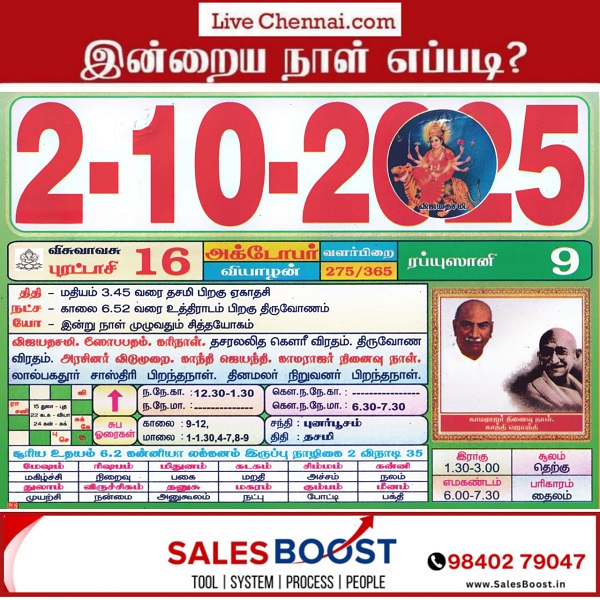October 02, 2025 – Thursday | Purattaasi 16 | Visuvavasu Year | |||