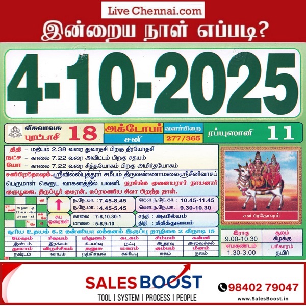 October 04, 2025 – Saturday | Purattaasi 18 | Visuvavasu Year | |||