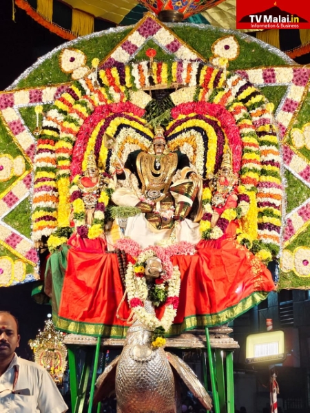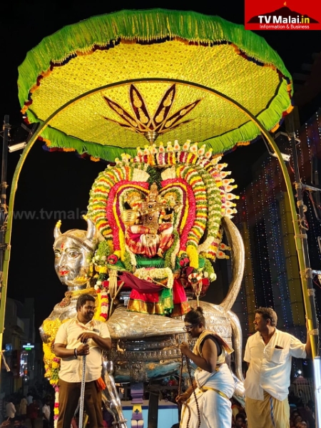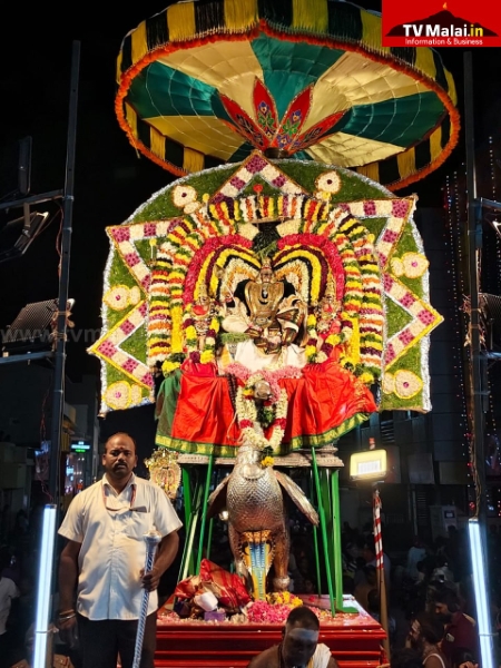 திருவண்ணாமலை அண்ணாமலையார் திருக்கோயிலில் திருக்கார்த்திகை தீபத்திருவிழா நான்காம் நாளான நேற்று (27.11.2025) இரவு பஞ்ச மூர்த்திகளான  விநாயகர் வெள்ளி மூஷிக வாகனத்திலும், வள்ளி தெய்வானையுடன் சுப்பிரமணியர் வெள்ளி மயில் வாகனத்திலும், உண்ணாமலை அம்மன் சமேத அருணாசலேஸ்வரர், கற்பக விருட்சம் வாகனத்திலும், பராசக்தி அம்மன் வெள்ளி காமதேனு வாகனத்திலும், சண்டிகேஸ்வரர் வெள்ளி ரிஷப வாகனத்திலும், மாட வீதி உலா வந்து பக்தர்களுக்கு அருள்பாலித்தார்கள்.
