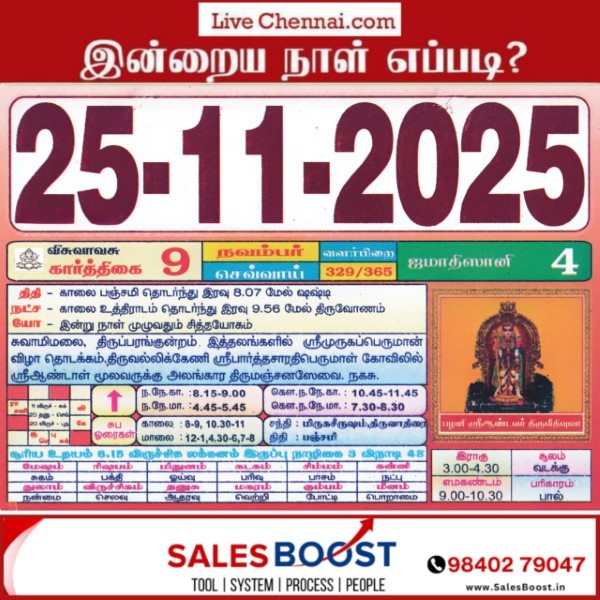 | November 25, 2025 – Tuesday | Karthigai 09 | Visuvavasu Year | |||