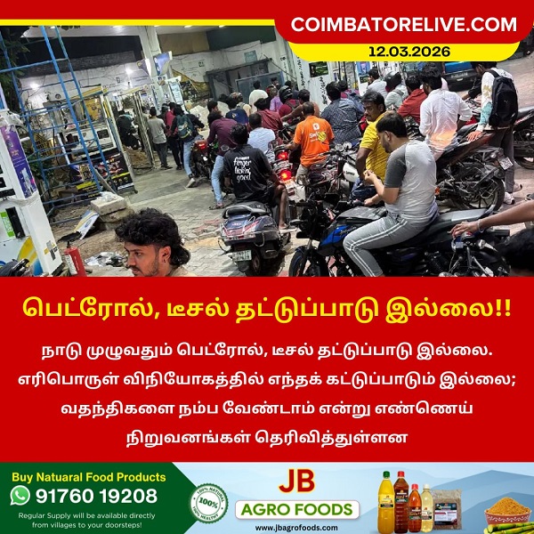 நாடு முழுவதும் பெட்ரோல், டீசல் தட்டுப்பாடு இல்லை. எரிபொருள் விநியோகத்தில் எந்தக் கட்டுப்பாடும் இல்லை; வதந்திகளை நம்ப வேண்டாம் என்று எண்ணெய் நிறுவனங்கள் தெரிவித்துள்ளன.
