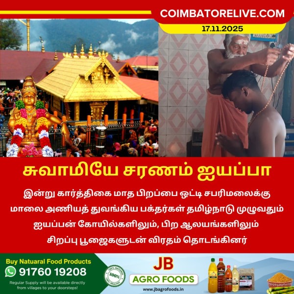 இன்று கார்த்திகை மாத பிறப்பை ஒட்டி சபரிமலைக்கு மாலை அணியத் துவங்கிய பக்தர்கள் தமிழ்நாடு முழுவதும் ஐயப்பன் கோயில்களிலும், பிற ஆலயங்களிலும் சிறப்பு பூஜைகளுடன் விரதம் தொடங்கினர்.