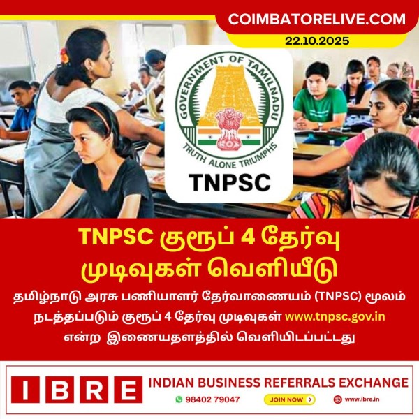 தமிழ்நாடு அரசு பணியாளர் தேர்வாணையம் (TNPSC) மூலம் நடத்தப்படும் குரூப் 4 தேர்வு முடிவுகள் www.tnpsc.gov.in என்ற இணையதளத்தில் வெளியிடப்பட்டது.